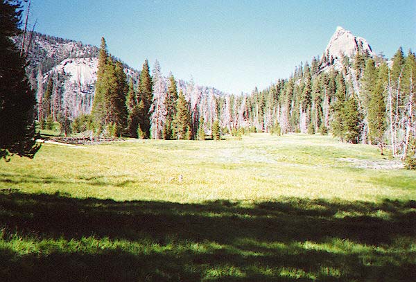 I did not want to blow by the Sugarloaf camp and I wanted to scope out the next camps. After a pow-wow we decided to head over to the next camp and make our decision whether to push on or not. Dave headed out for the camp while I futzed with my pack. As it turned out, the turnoff to the Sugarloaf Meadow was just a few yards down the trail, and once again I marveled at how I completely forgot exactly how the area and junction looked. Perhaps it was more overgrown now.