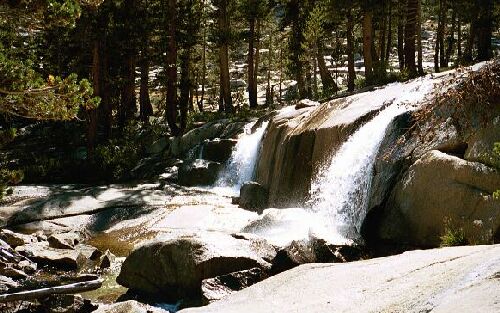 Going back was easy. After crossing the lakeshore ridge, I headed up the gully while Dave tried a route to the right to mount the small ridge. The way was mostly dirt and grass and I was soon at the ridge top. After meeting up again, Dave went down his talus stair while I followed the gully downward, eventually meeting Dave near the bottom of the talus section. We found our corner route around the ridge and made our way down back the way we came. We actually ended up a bit lower on the Kern-Kaweah River, but a short hike brought us back to our crossing and the place Dave had stashed his sandals on a large boulder.